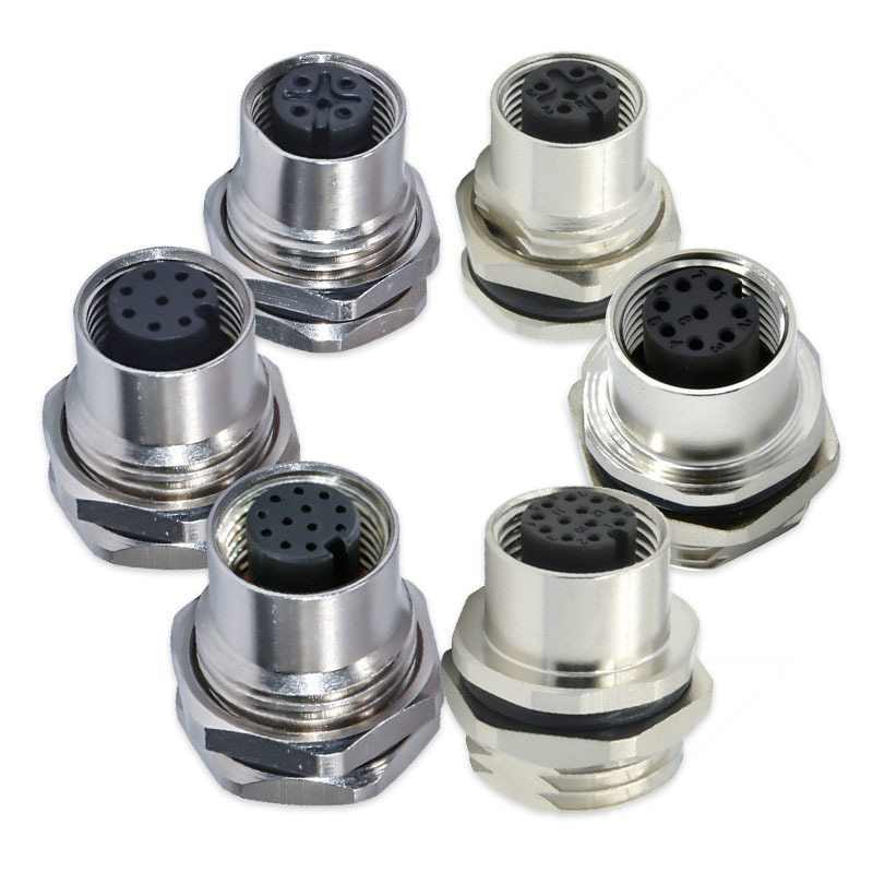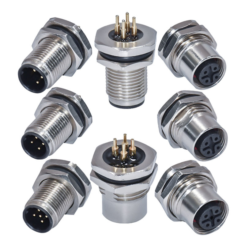 高品質のM12コネクタで90度配置で,PCBセンサー用には複数のピンコンフィギュレーション (3, 4, 5, 8, 12, 17ピン) で利用できます.自動車や産業用環境における男女接続に適しています.